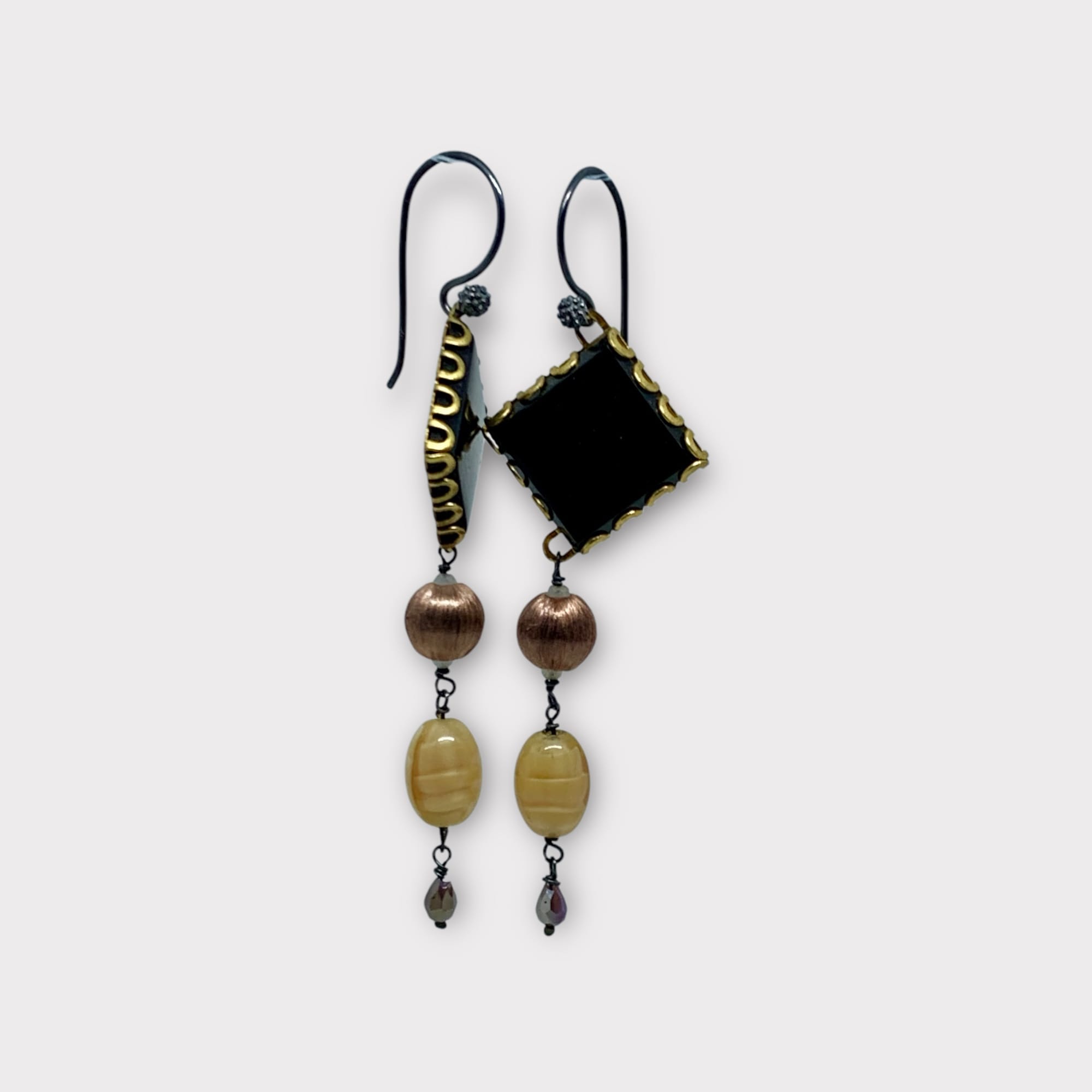 kobber farvet silke perler, her med krystal i top og bund, fra USA