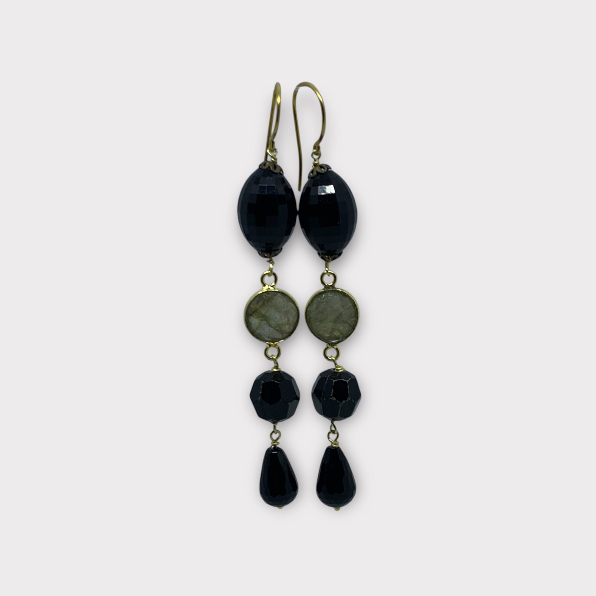 Vintage sort facetteret akryl perle ,her med messing blomst i top og bund