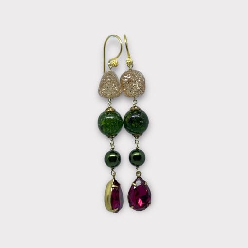 grøn bakelit med messing blomster i top og bund, begge fundet i Dk
