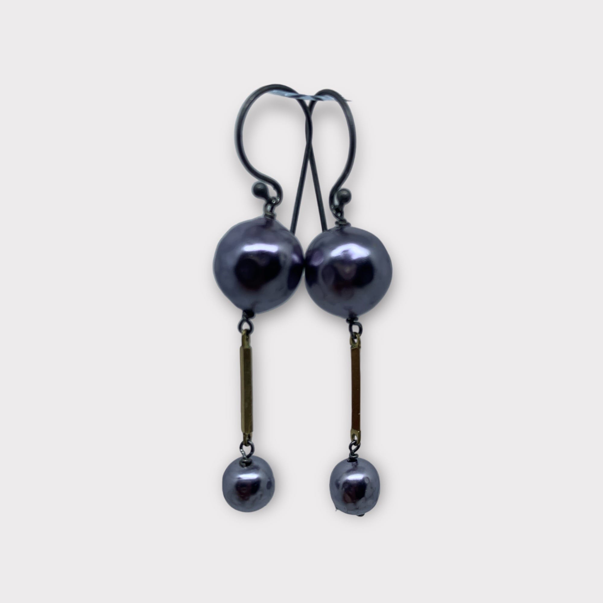 Vintage perle , lavet med krakelerings teknik , hvid og guld farvet