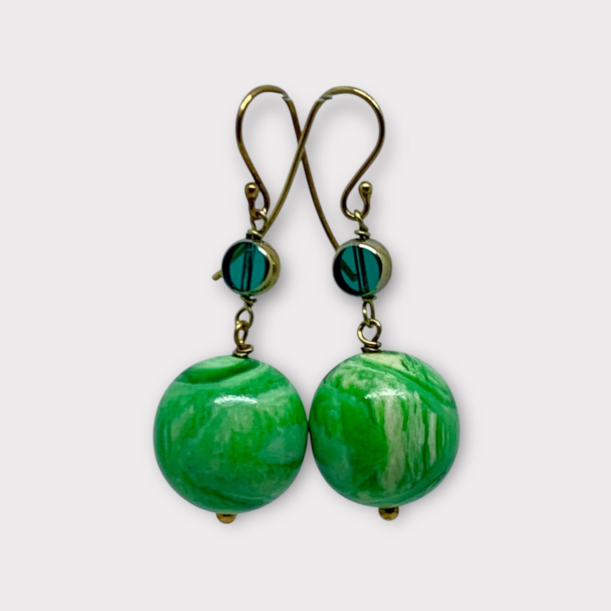 Petroleum grøn glas i forgyldt fatning